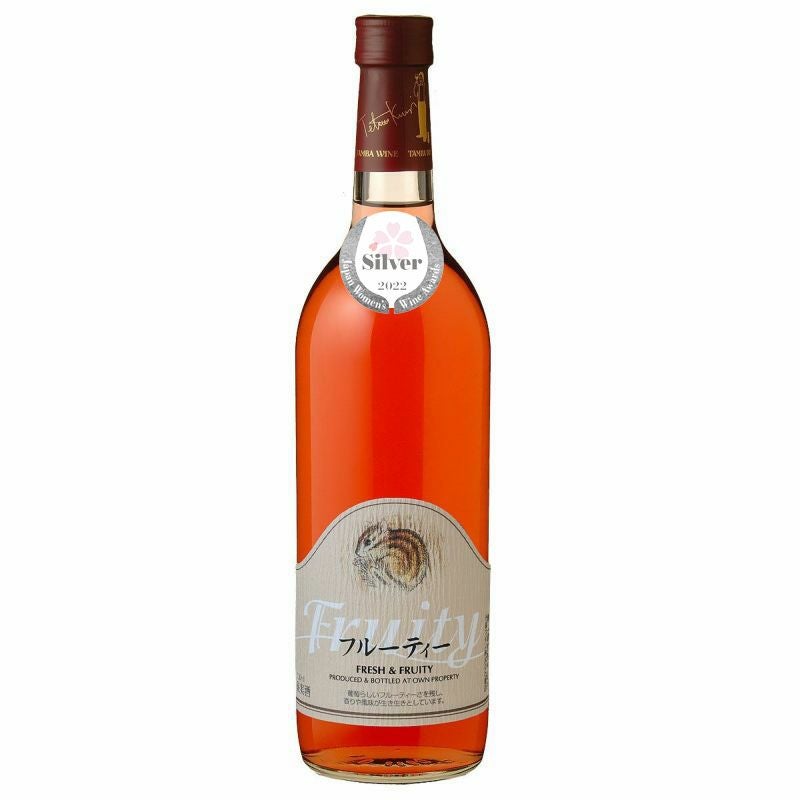 華やかなロゼの色と、ほのかな甘みが特徴のロゼワイン。丹波ワイン独自の酵母を使い低温発酵していますので、フレッシュな香りが生きています。表ラベルのリスのイラストは、京都在住の日本画家、竹内浩一氏によるものです。