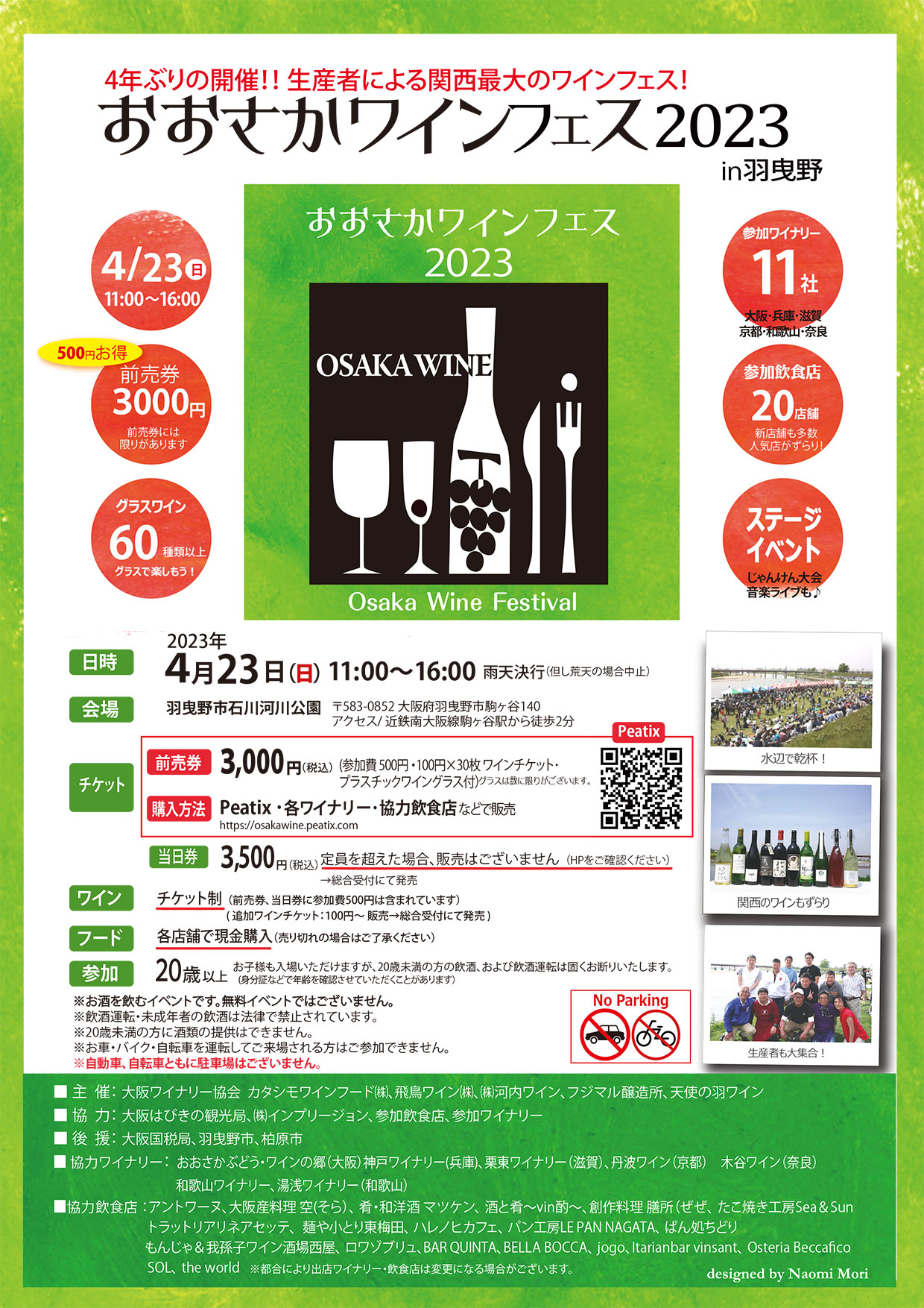 前売券: 3,000円(税込)(参加費500円 / 100円×30枚のワインチケット付)