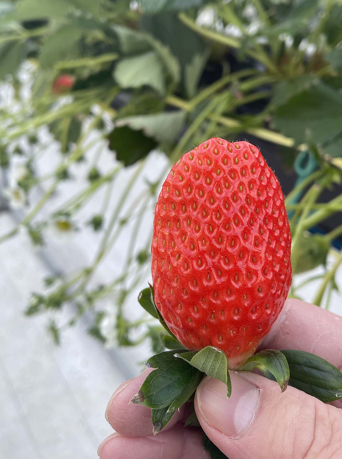 この農園で育てられる「章姫(あきひめ)」は、酸味が控えめで甘みがしっかり。果肉が柔らかく果汁が多いため、長距離輸送には向かず、まさに現地でしか味わえない生のご褒美です。