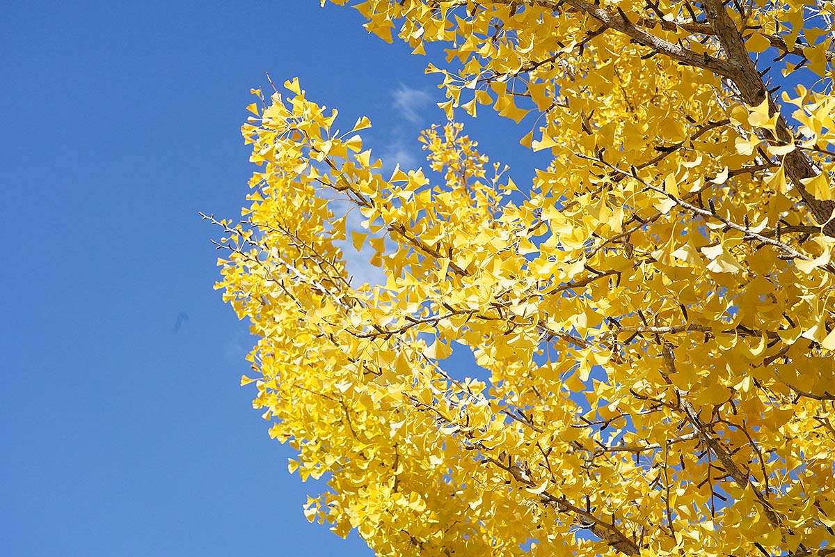 イチョウ並木や楓の木々も緑から薄っすらと黄色や赤色に染まってきています。