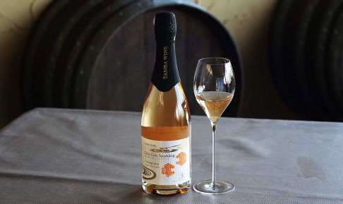 ほんのりきれいなオレンジ色のワインで、ちょっとボディ感のあるスパークリングワインに仕上げました。