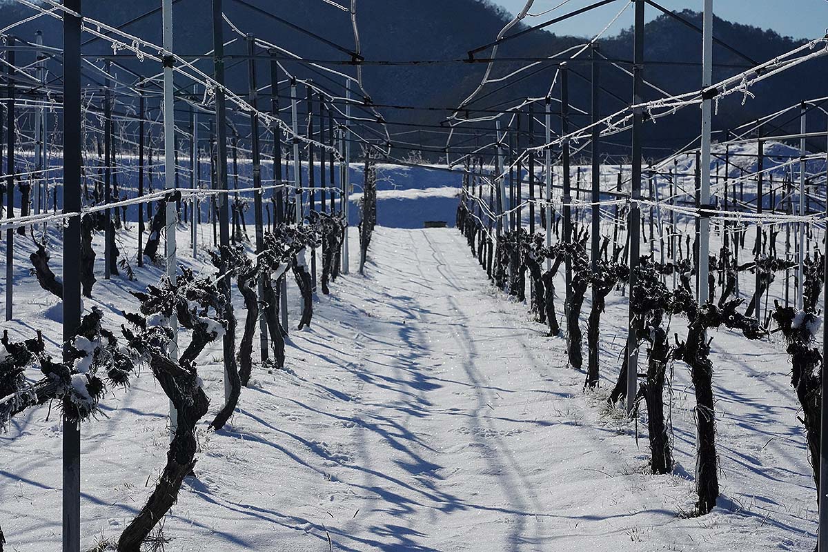 真っ白の雪と、茶色のぶどうの木々のコントラストが素晴らしいこの季節。