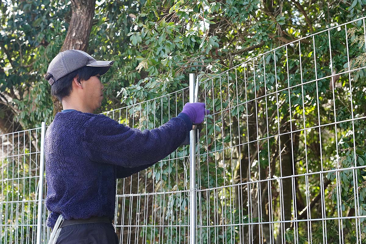 新芽の出る前に獣害フェンスを農園スタッフで設置しました。