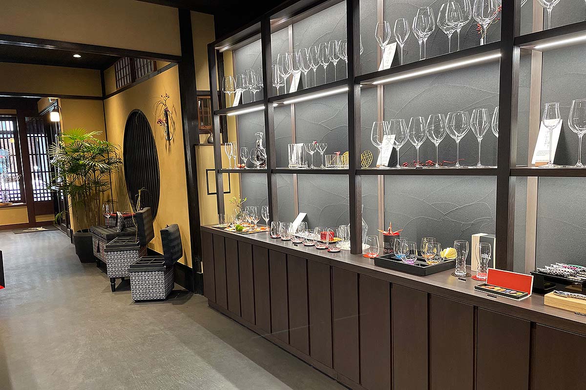 歴史ある建物に新たな息吹を吹き込み、古き良き京町屋の「趣」を大切に残しながら、リーデルの現代的なエッセンスを加えた店内は、伝統とモダンが重なり合う素敵な空間です。