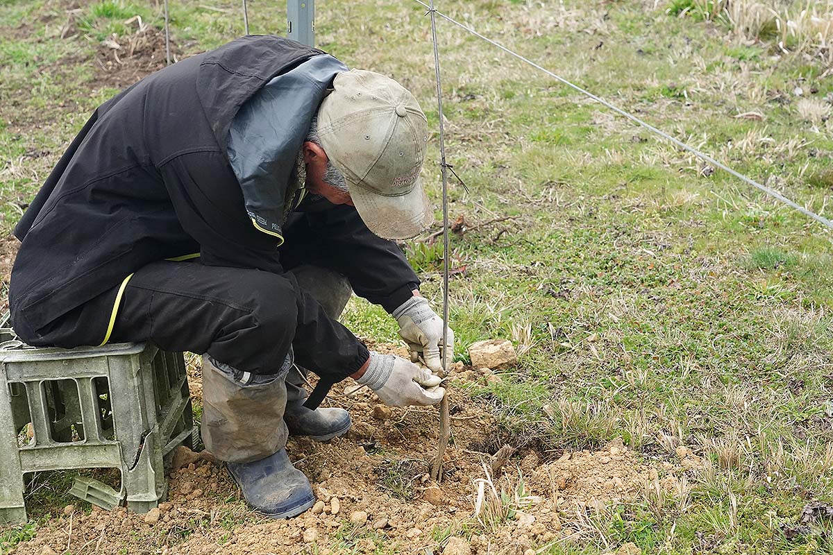 5年後にはしっかりした房を付けてくれることを期待しながら植え付けます。