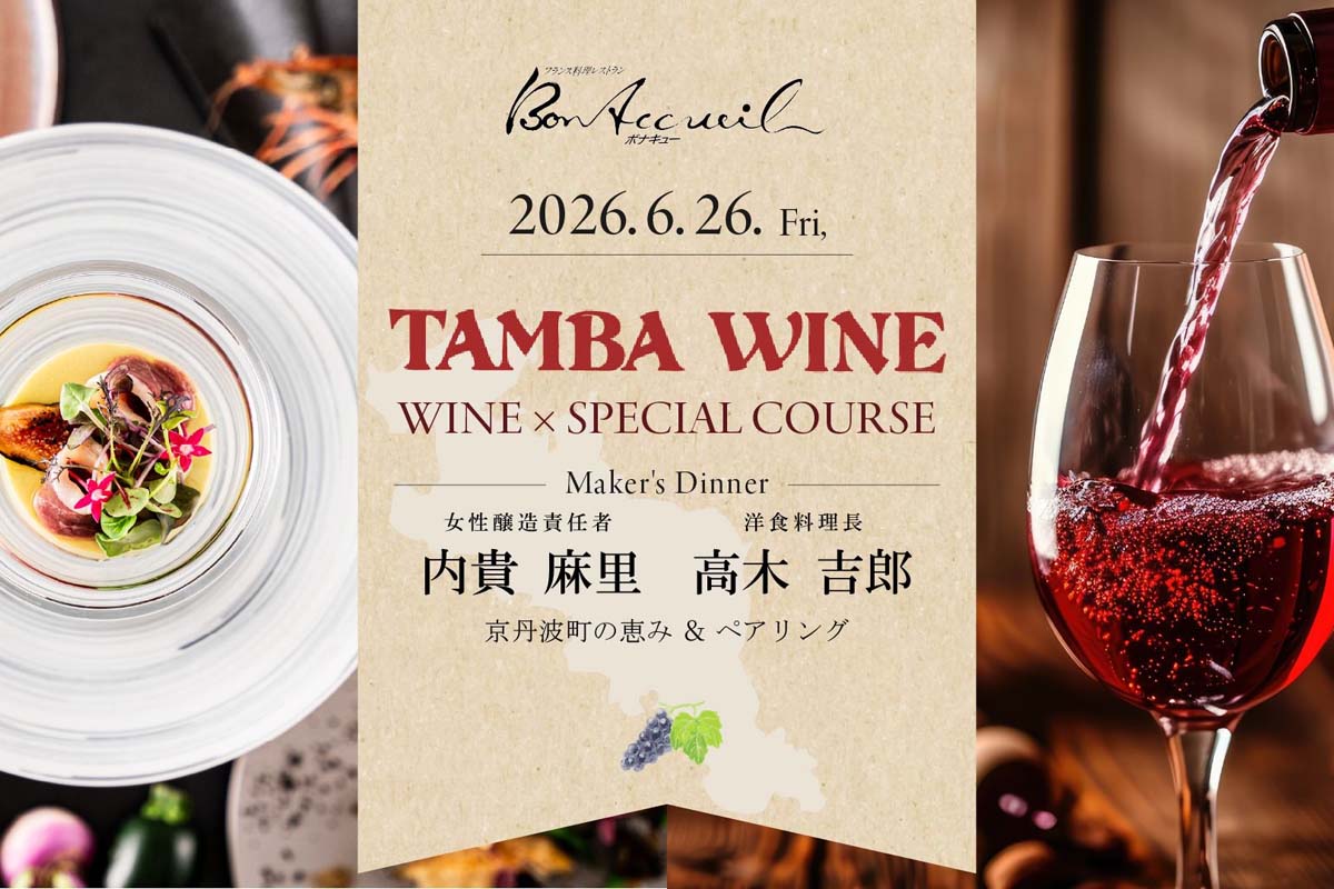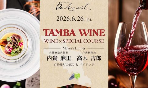ワイン造りの裏話や製造秘話とともに、ワイナリーのある京都府京丹波町の厳選食材を使用した、この日のためだけに仕立てる特別コースをお届け。