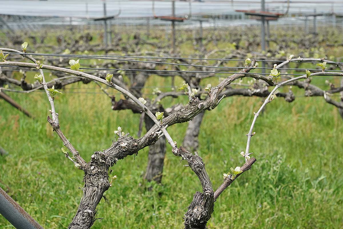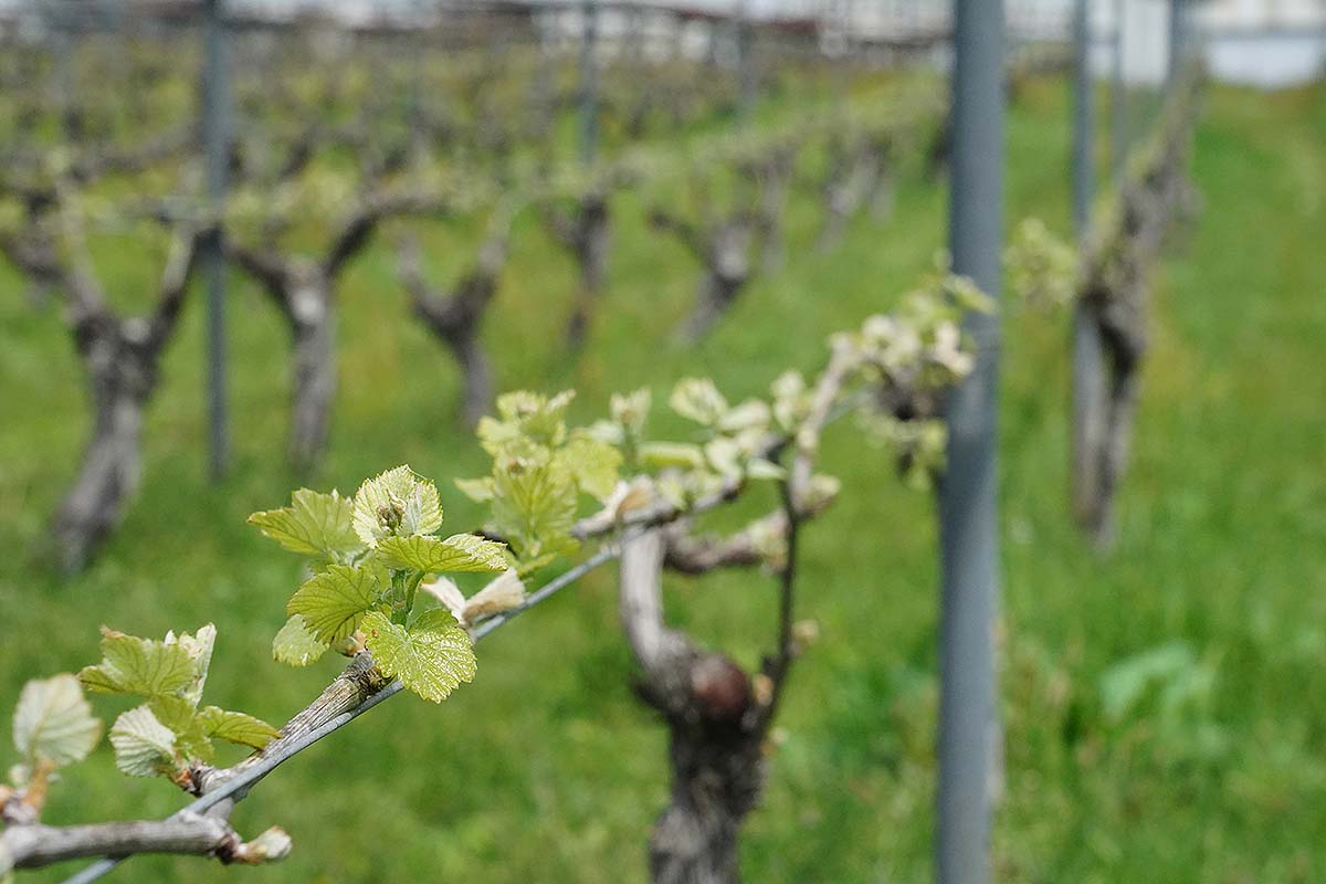 写真のピノ・ノワールは樹齢15年ほどの木で、現在は2022年ビンテージをリリース中です。