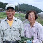 除梗破砕機で弾かれた梗に粒がついてくるのでその度に仲村社長が