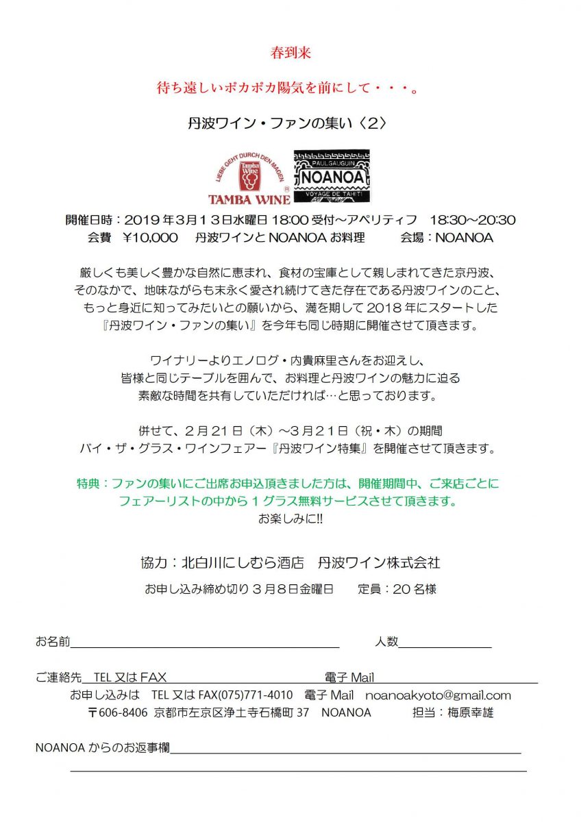 会費:¥10,000 丹波ワインとNOANOAお料理