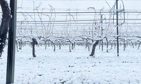 熱中症に注意… と連日スタッフ同士で声掛け合っていたのがつい先日のような気がしますが、「あっ」という間に丹波も冬真っ只中です。 今年の初積雪。 レストランの窓からは一面ぶどう畑の枝と積雪のモノトーンの風景が広がっています…