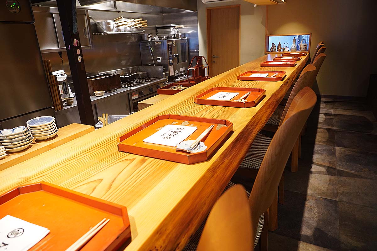 一枚板のカウンターに広がる静の美